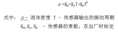 WS3051MD-MM 智能螺紋式單直管密度計根據(jù)共振原理而設(shè)計。當(dāng)流過單直管內(nèi)的液體密度變化時,他會影響密度計的振動質(zhì)量,振動質(zhì)量的變化影響單直管的諧振頻率,諧振頻率與過程流體的密度成反比。通過另一個壓電晶體檢測出來,通過移相和放大電路,測量管被穩(wěn)定在自然諧振頻率上。當(dāng)諧振頻率變化時,通過電子處理單元計算出準(zhǔn)確的密度值。振動頻率與密度的關(guān)系為: